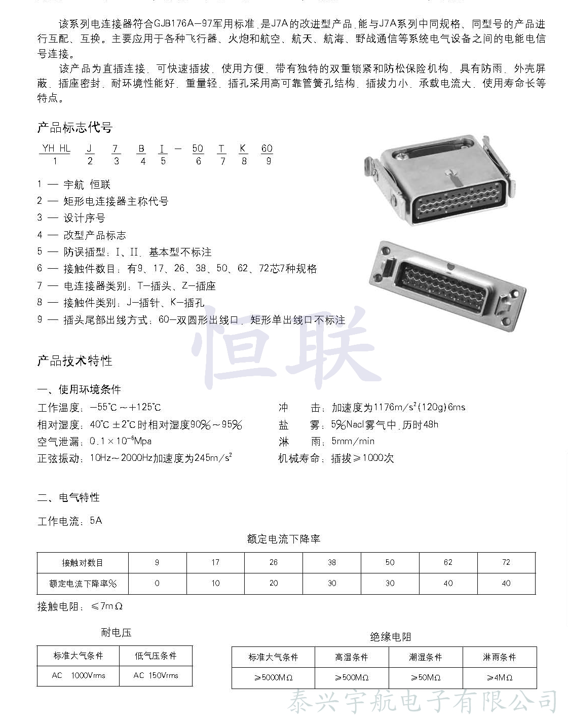 該系列電連接器符合GJB176A-97軍用標(biāo)準(zhǔn),是J7A的改進(jìn)型產(chǎn)品,能與J7A系列中同規(guī)格、同型號的產(chǎn)品進(jìn)行互配、互換。主要應(yīng)用于各種飛行器、火炮和航空、航天、航海、野戰(zhàn)通信等系統(tǒng)電氣設(shè)備之間的電能電信號連接。該產(chǎn)品為直插連接,可快速插拔,使用方便,帶有獨(dú)特的雙重鎖緊和防松保險機(jī)構(gòu),具有防雨,外殼屏蔽,插座密封,耐環(huán)境好,重量輕,插孔采用高可靠管簧孔結(jié)構(gòu),插拔力小,承載電流大,使用壽命長等特點(diǎn)。