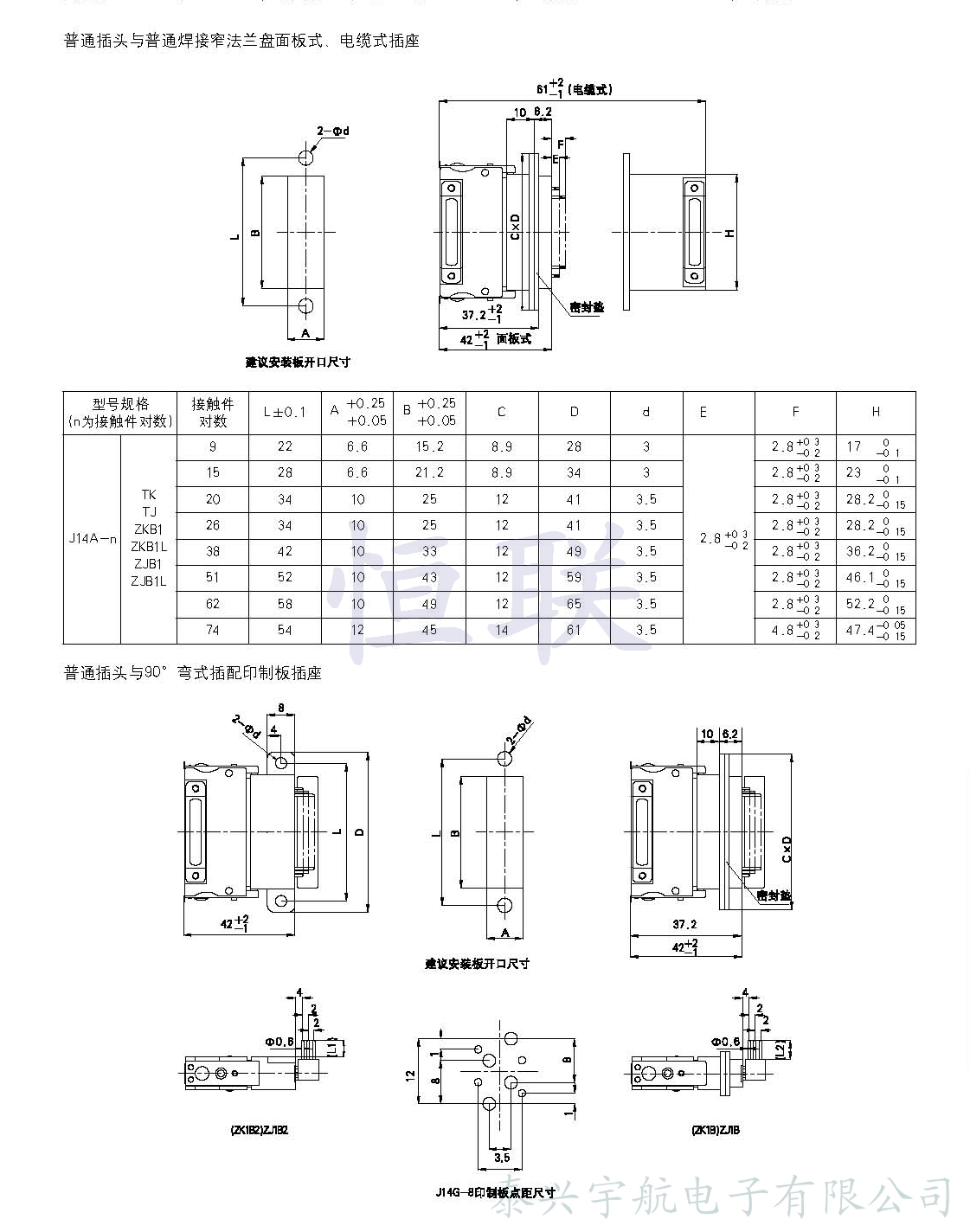 J14A、C、D、G、P系列矩形電連接器