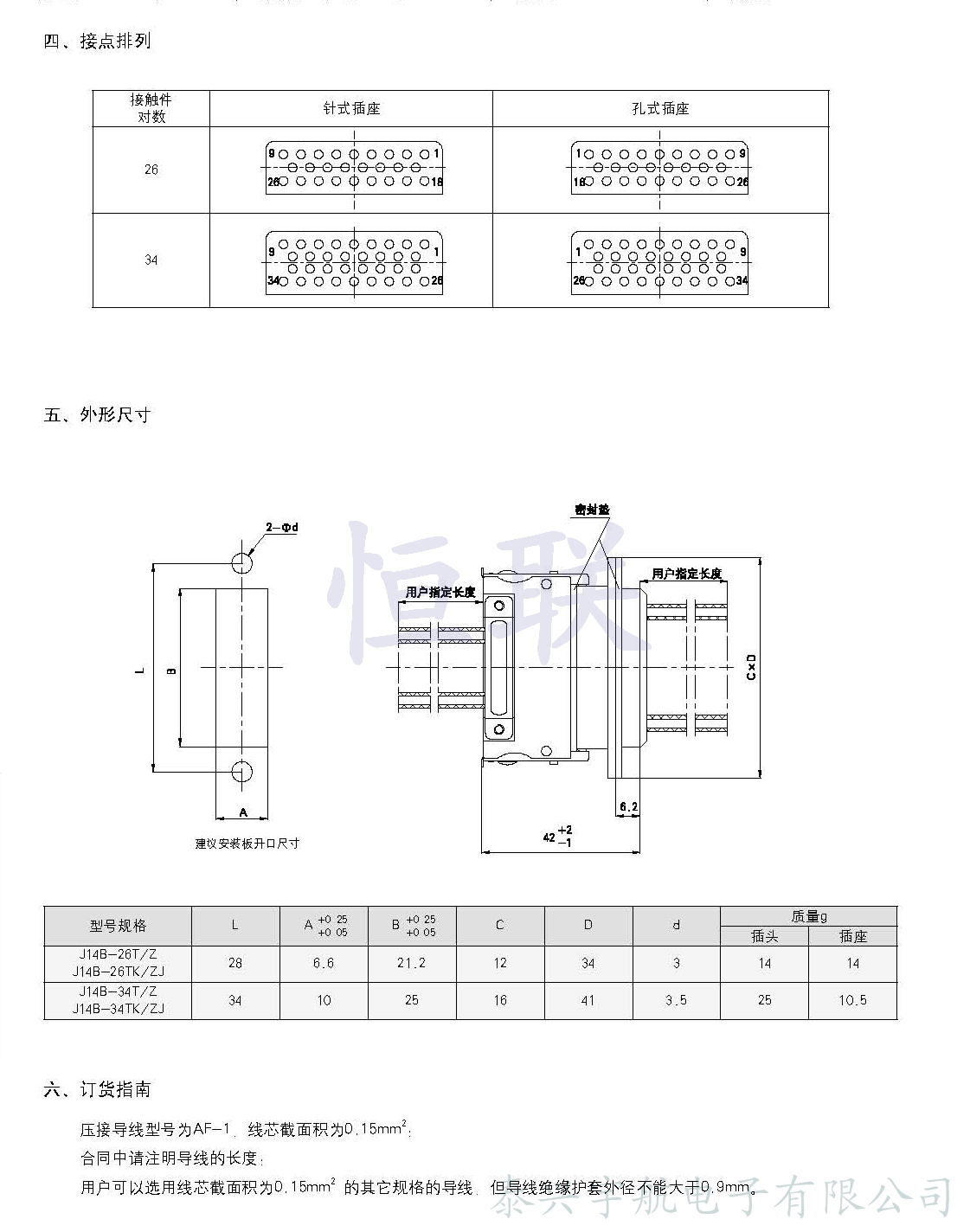 該系列產(chǎn)品為低頻類電連接器,符合GJB142A-92標(biāo)準(zhǔn),采用雙保險鎖緊結(jié)構(gòu),圓角防反插設(shè)計,插座面板式固定,帶電纜,端接形式為壓接式。該系列產(chǎn)品須在J14A系列連接器的基礎(chǔ)上增加了接觸件的密度和防雨性能,廣泛適用于各種電子儀器間的電氣連接。