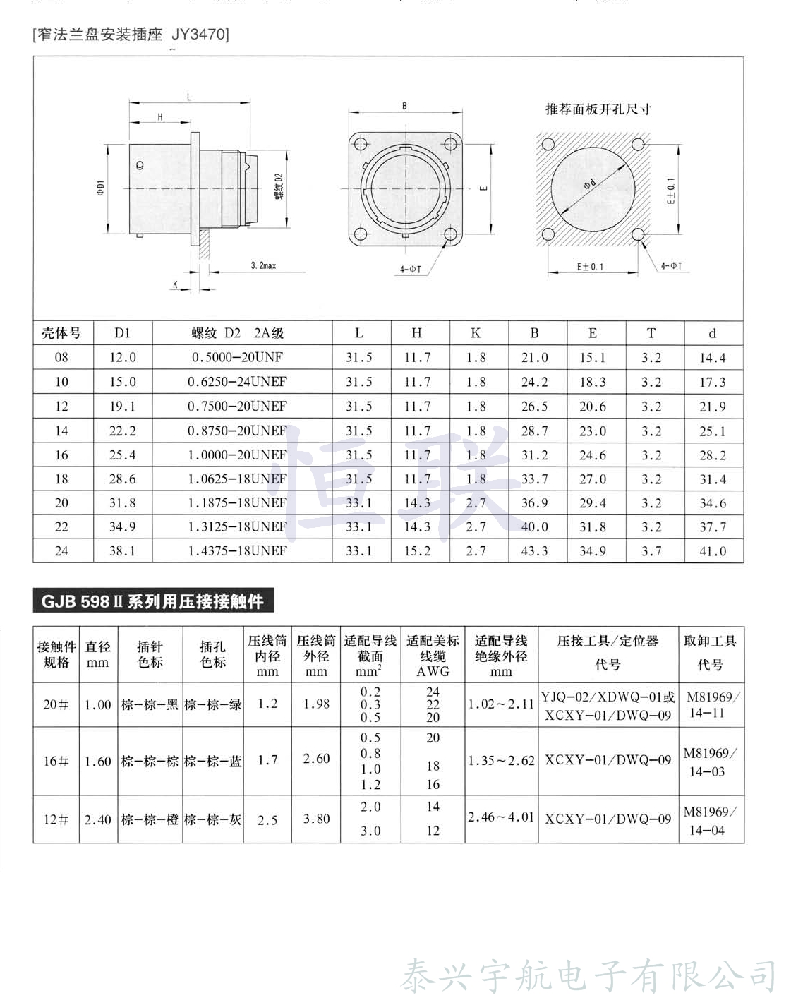符合GJB 598(等效于MIL-C-26482)Ⅱ系列
