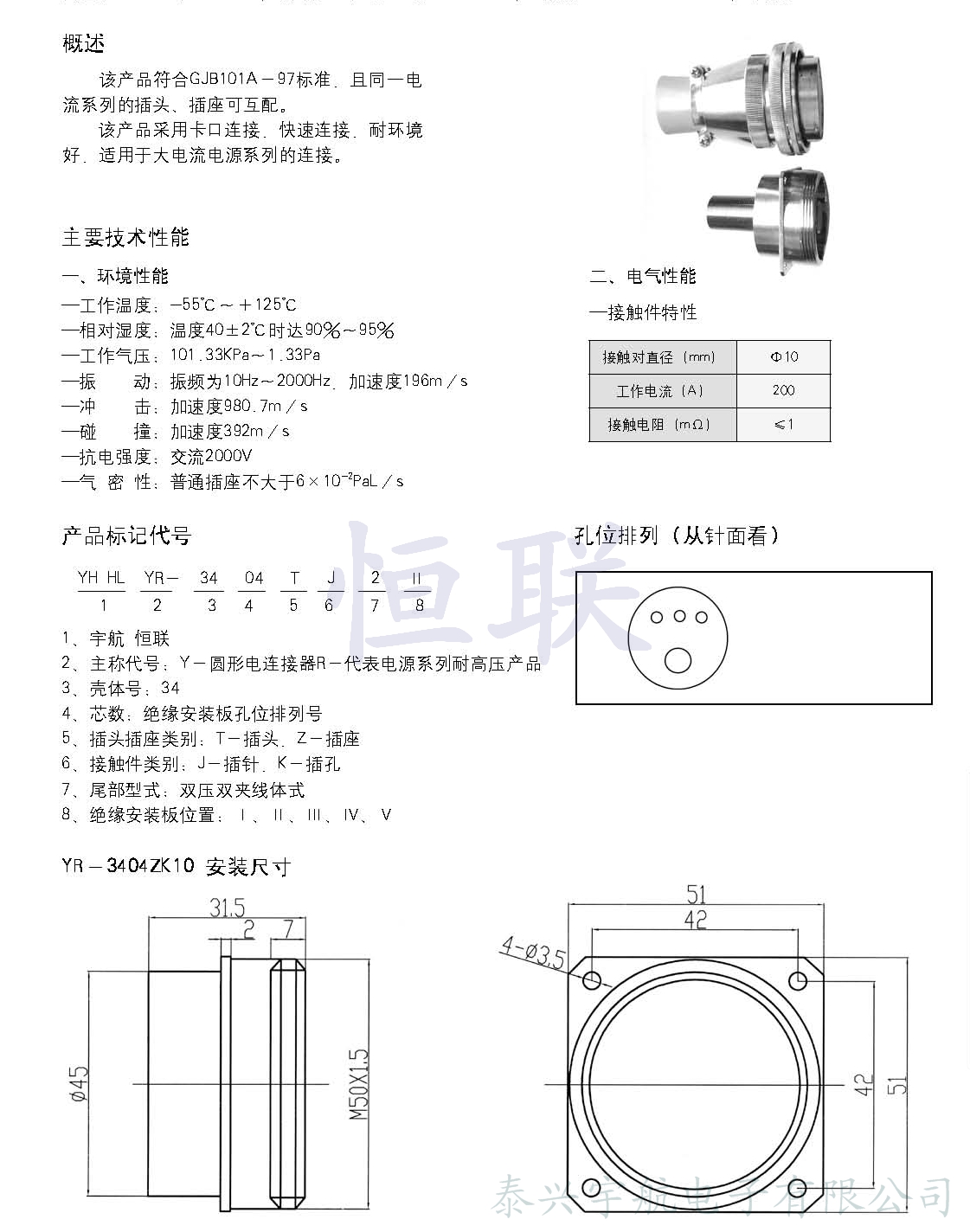 YR系列大電流耐高壓電連接器