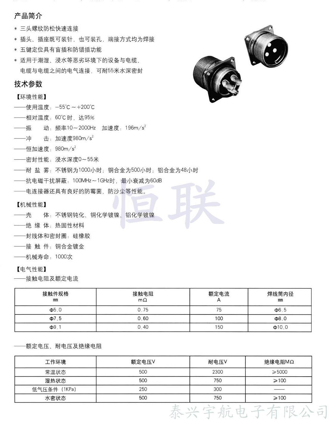 YMD系列船用抗腐蝕防水電連接器
