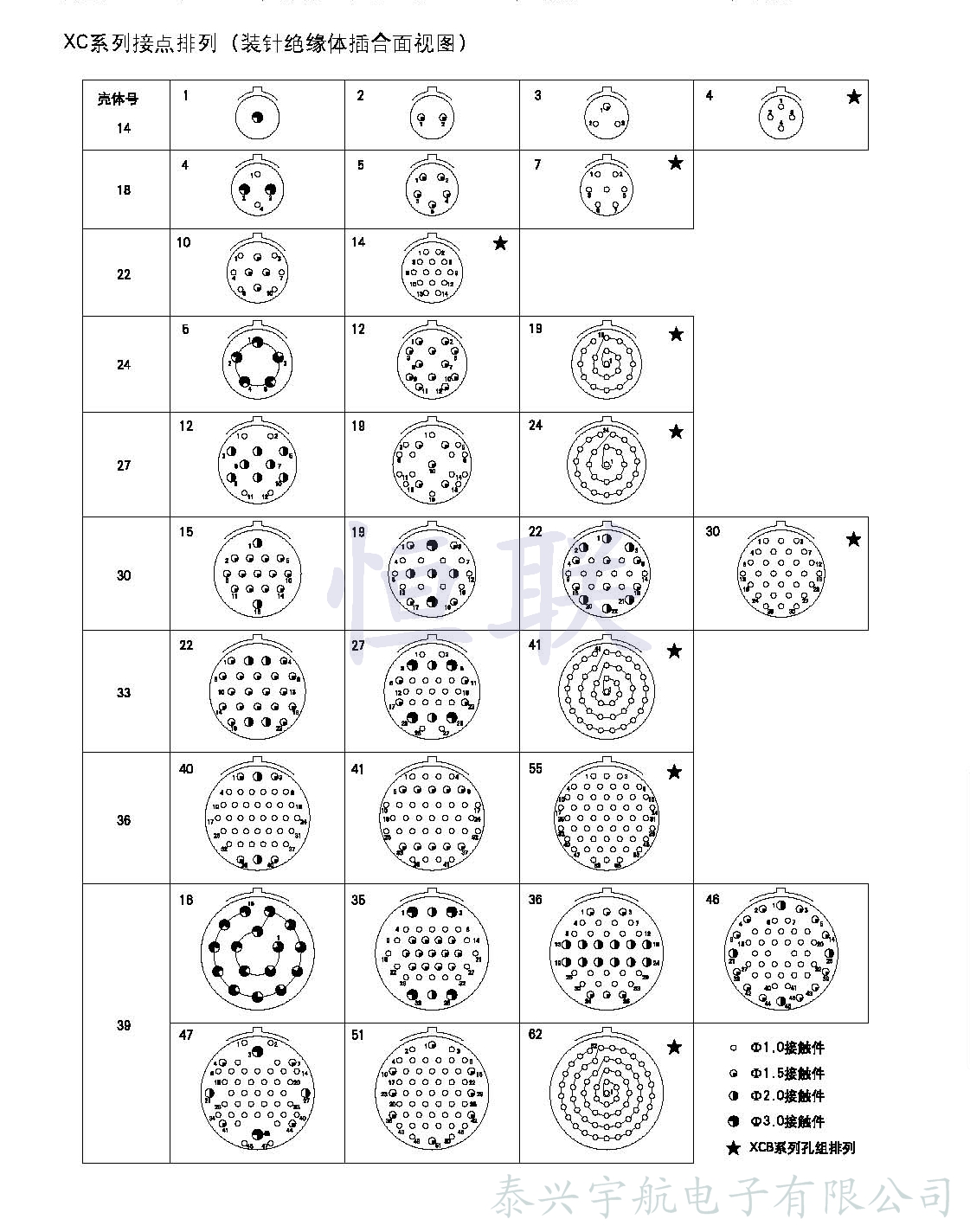 XC系列圓形電連接器( 航空插頭 )為低頻類電連接器。九種殼體號;4種接觸件規(guī)格;32種孔位排列。從1孔到62孔。采用卡口式快速連接系統(tǒng),操作方便,連接可靠,耐振動,抗沖擊。五鍵槽定位,具有盲插和防誤插功能。高可靠的雙曲面線簧孔使連接器插拔柔和,接觸電阻小,工作可靠。插座共有五種結構形式選用。符合國家軍用標準GJB2889。廣泛用于航天,航空,航海、鐵路、野戰(zhàn)通訊及各種儀器、儀表等設備中。