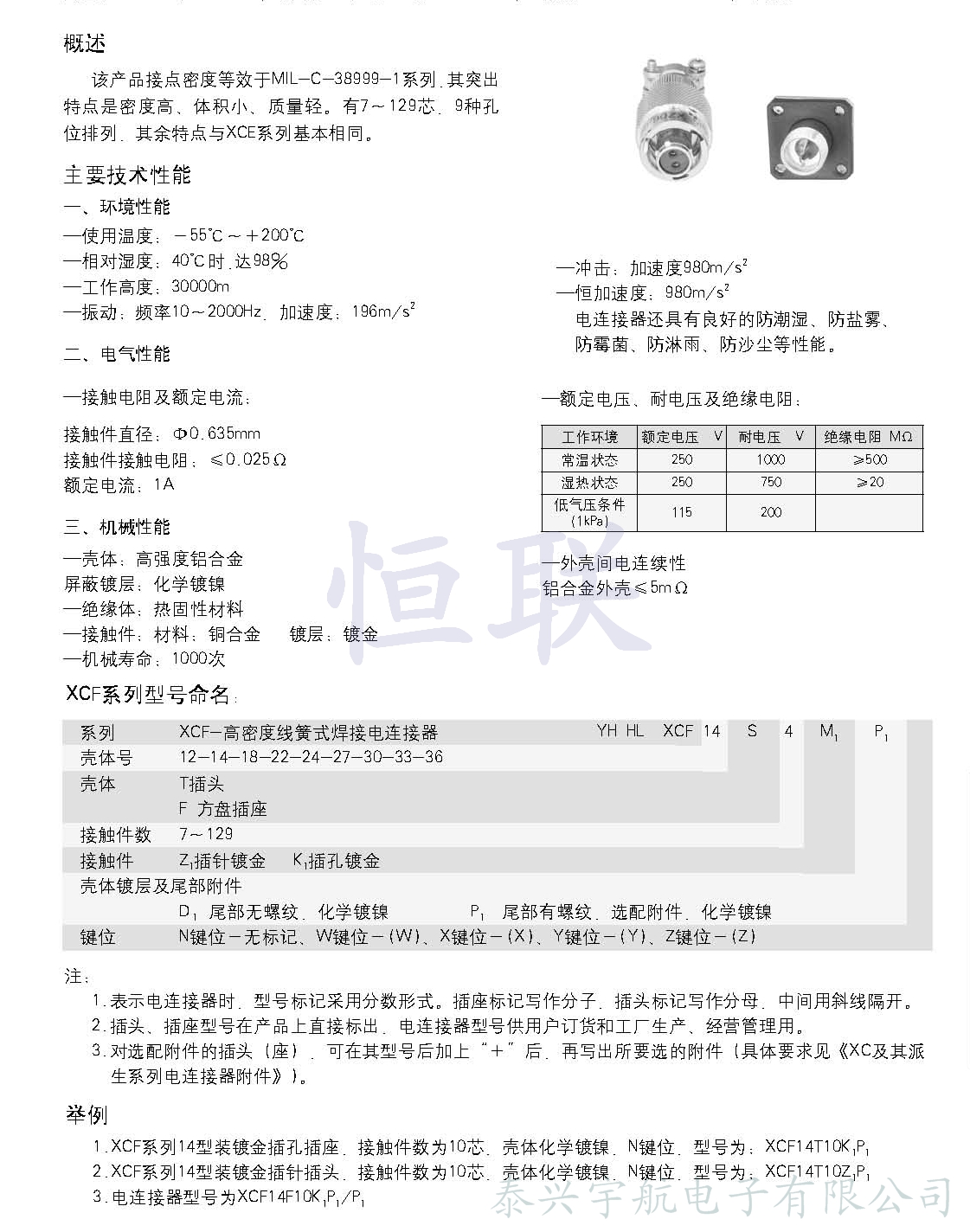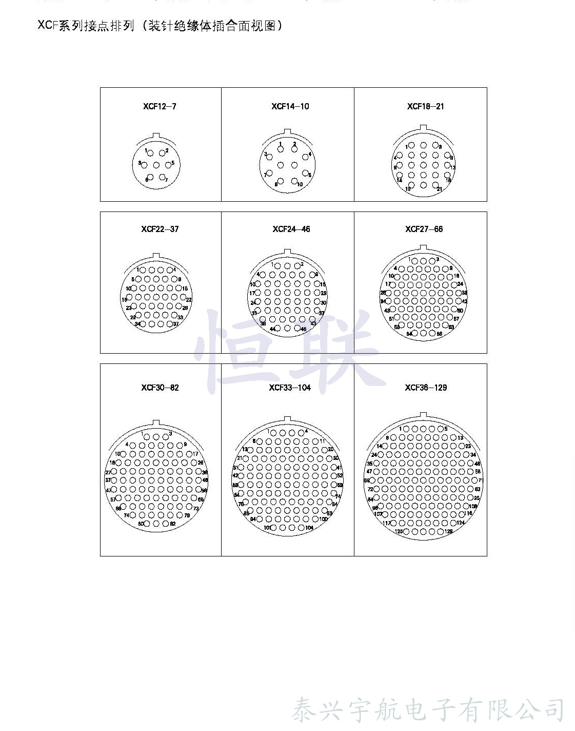 該產(chǎn)品等效于MIL-C-38999 I,突出特點(diǎn)即為密度高,體積小,重量輕,7~129芯,9種孔位排列,其余特點(diǎn)與XCE系列基本相同。等效于XCF系列且同一型號(hào)對(duì)應(yīng)插頭座可以互配。